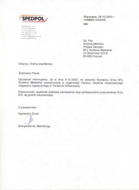 Bardzo dziękujemy za wzorowe zrealizowanie usługi.