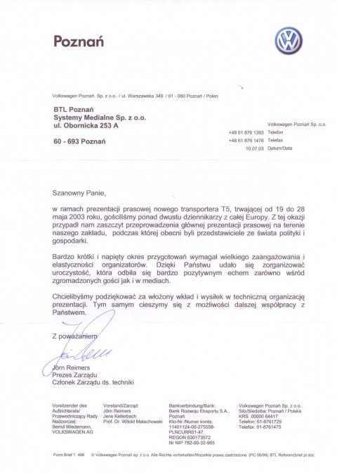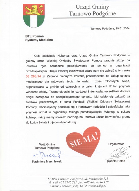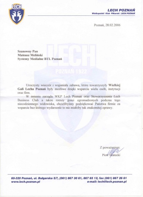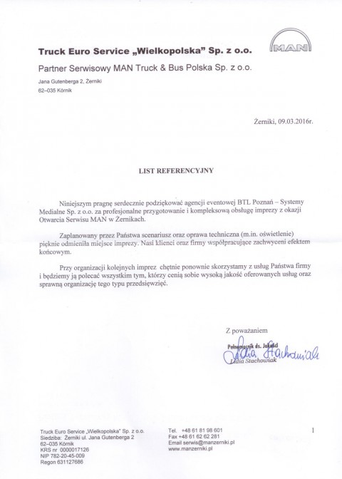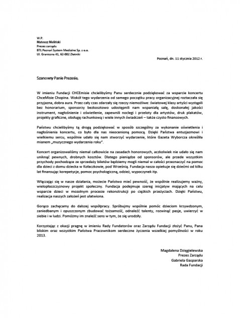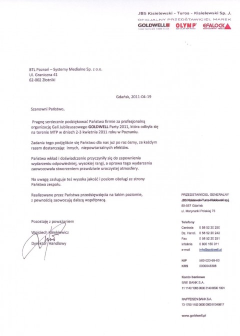 W imieniu całej firmy chcielibyśmy podziękować za wsparcie, za to, że dzięki Państwa pomocy wszystko wyszło tak jak zostało zaplanowane. Mamy nadzieję, że w przyszłości będziemy jeszcze ze sobą współpracować z tą samą energią i zapałem.